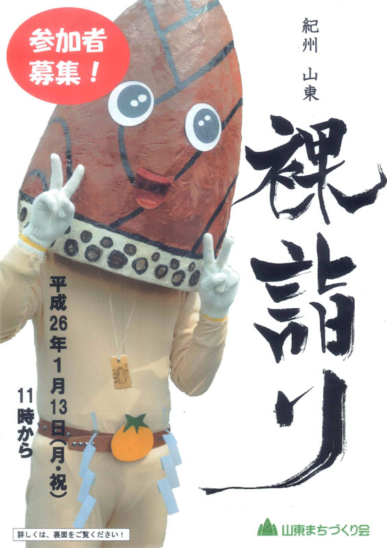 この歴史ある「裸詣り」を広く知ってもらおうと、山東まちづくり会が一昨年から広く参加者を募集して「裸詣り」を行っています。明年も下記の要領で行いますので、興味のある方は是非ご参加ください。