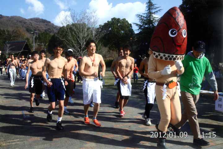 戦後、この風習はマラソンブームと相まって、ジョギング形式で一時復活を果たしますがそれもやがて廃れてしまい、僅かに地元の古老が昔ながらに夜明け前に1人参拝され、また地元の少年野球団の子供たちが成人の日の日中に継承してくれている状況でした。