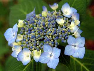境内に植えられている紫陽花は、右写真のように巷でよく見かけるものも沢山ありますが、左の写真のような花もあります。