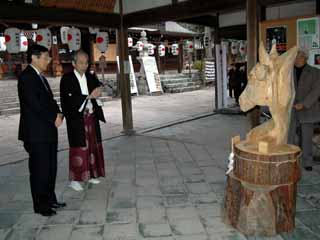 それはさておき、今朝、授与所を開いて、諸々の準備をしていると、「遠方から来たので写真を撮って下さい」 という声が。