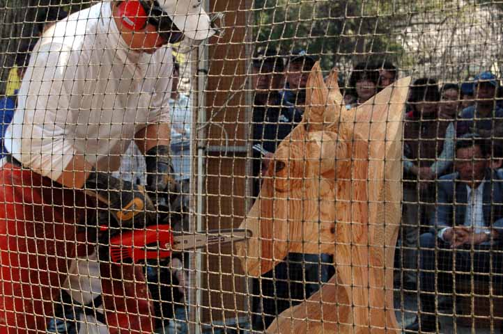 午前12時30分から、恒例になりましたチェンソーカービングの実演奉納。