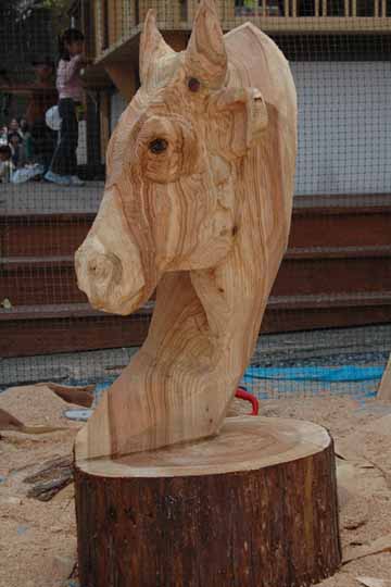 さて、このチェンソーカービングの干支をモデルにした 木彫りの置物 をお正月に頒布しています。