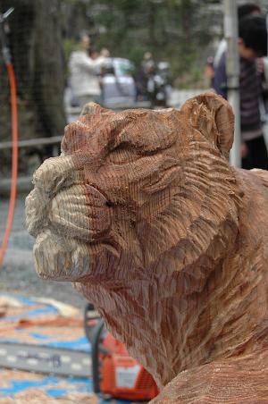 木祭りの神賑行事として、今年で5回目を迎える、チェンソーカービングの実演奉納。