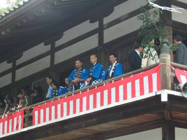 餅撒きには大橋建一和歌山市長も見え、他の奉納者と一緒に餅撒きを行いました。