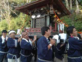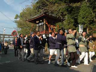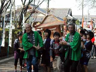 奥宮で祭礼が執り行われている頃、本社では子供神輿が出発準備をしています。