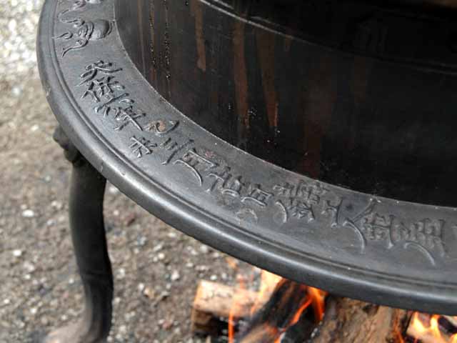 この釜は 天保6年(西暦1835年)に奉納されたもののようで、写真の様に年号が彫られています。