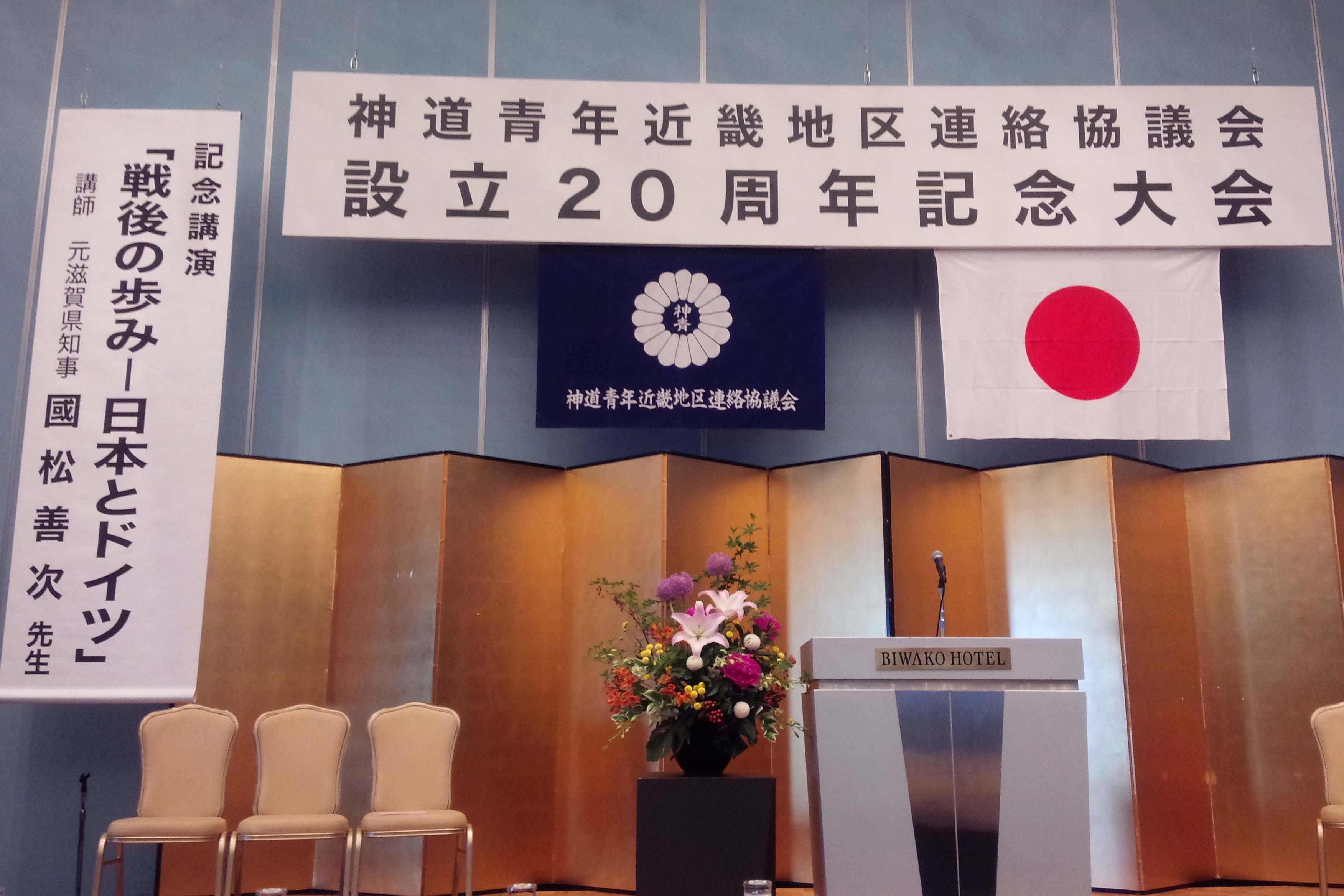 神道青年近畿地区連絡協議会の設立20周年大会に出席してきました。この会は近畿地区2府4県の神道青年会が集まって組織している団体で、それまでの近畿ブロック協議会から現行体制になって満20年を迎えました。これを祝して定例総会に併せて記念大会が開催されました。