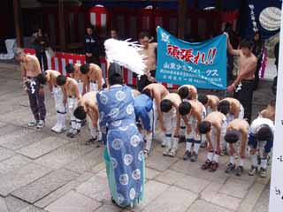 昔より続く 「裸詣り」 とは少し違った形態ですが、ここ数年来、地元の少年野球チーム 「山東スパークス」 が裸詣りを行っています。